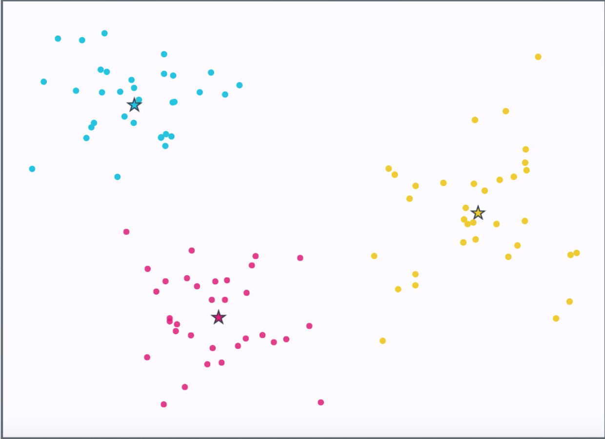 - Recalculate the new centroids and again assign each data point to its nearest centroid