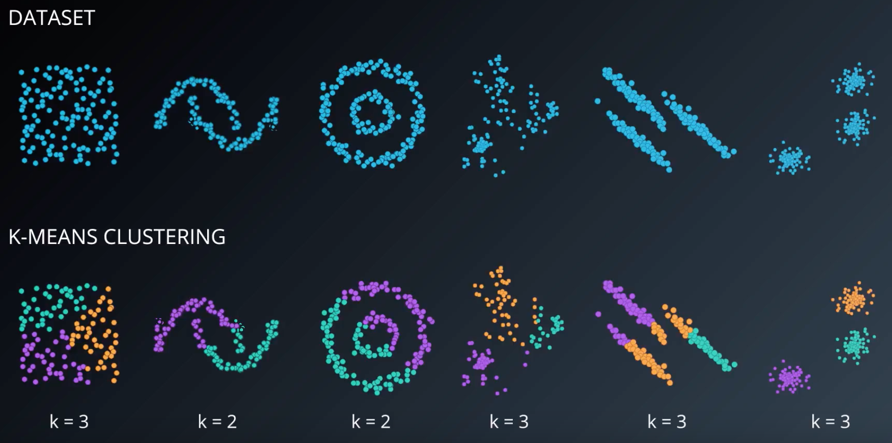 Kmeans also only works if you the data can be described by clusters that are circular or spherical in hiigher dimesion.