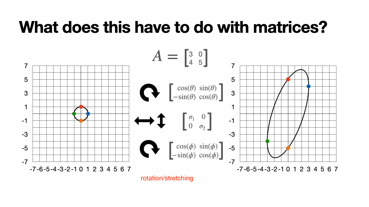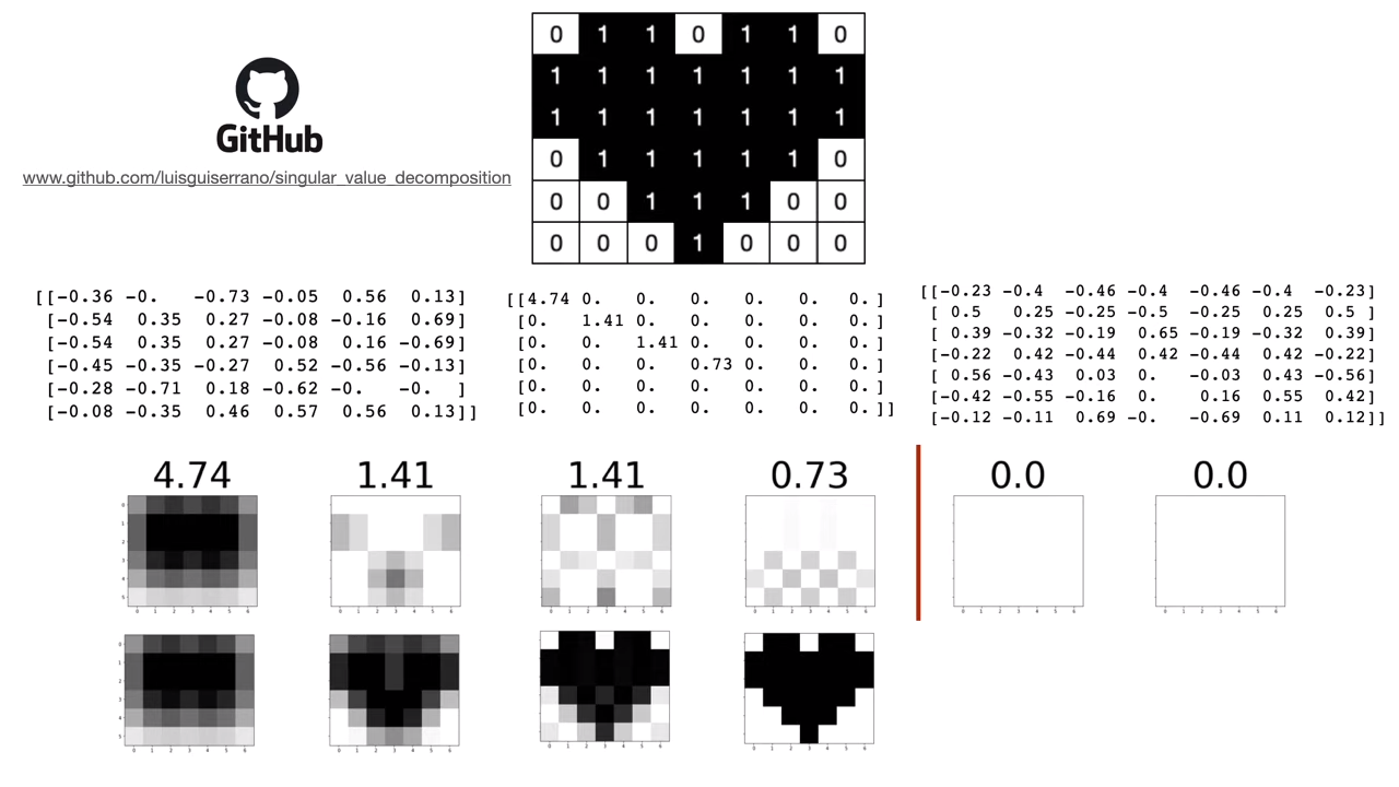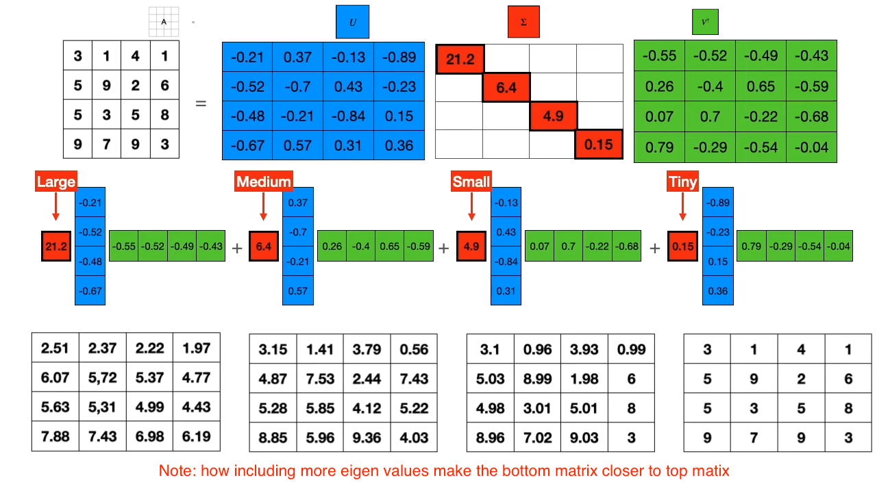 SVD example showing matrix broken down into three matrixes.