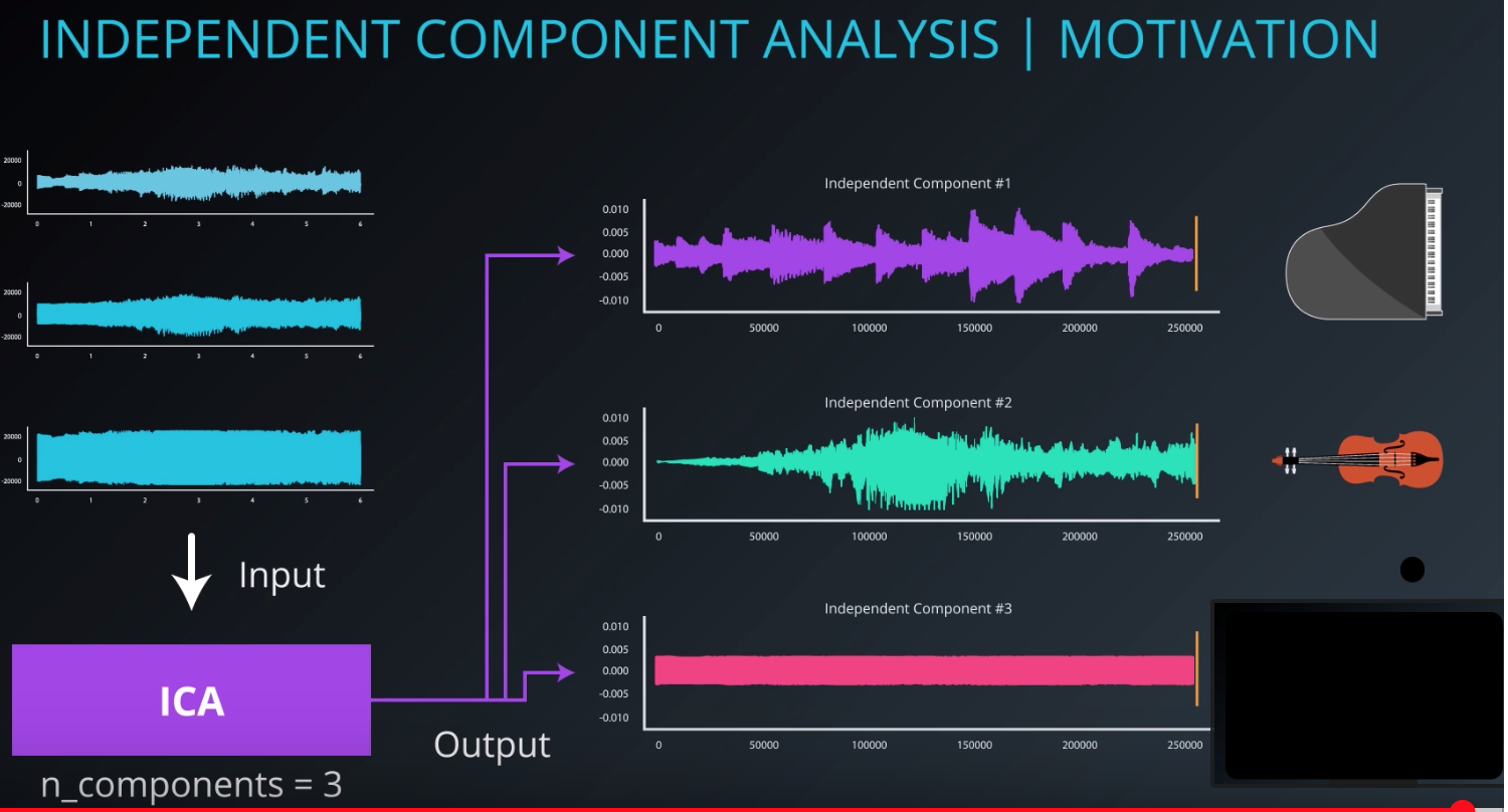 In this image, you go to a concert with three sounds intermingled. ICA will allow you to fetch original noise/